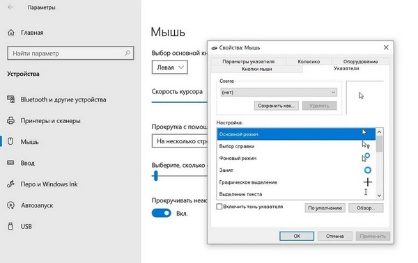 В открывшемся окне отображаются все типы курсоров: например, «Обычный» (отображается в большинстве случаев) или «Ссылка» (появляется при наведении на гиперссылку). Чтобы изменить конкретный указатель: