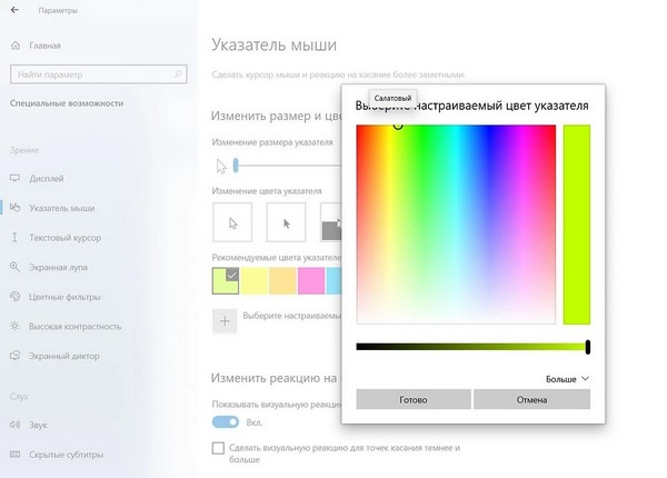Настройка цвета и размера курсора