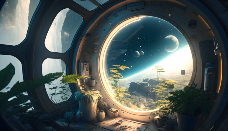 На этих живых обоях открывается вид из большого космического иллюминатора. Горшки с растениями на подоконнике создают ощущение уюта, а за стеклом чужой пейзаж планеты с далекими мирами на звёздном небе. Такой живой фон не просто украшает, а словно переносит в другую реальность. Эта анимированная заставка плавно движется, наполняя экран живыми обоями на весь экран. Подойдет как на ноутбук, так и на рабочий стол ПК — не отвлекает, но добавляет глубину и атмосферу. Видео обои оживляют компьютер, создавая ощущение, будто вы действительно смотрите в окно космической станции.