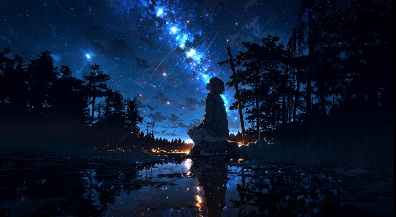 «Небо полное звёзд» — анимированная заставка, которая словно дыхание ночи на рабочем столе. Легкий шелест воды у берегов, девушка одна наедине с безмолвием вокруг. Тонкий узор деревьев словно расступается, открывая невиданный небесный простор, где мерцают звёзды и Млечный путь тянется над головой. Такие живые обои на ноутбук переносят в момент тишины и глубины, наполненный своей магией. Подробности кажутся живым рассказом, движения спокойной мелодией. Тёмные синие оттенки превращают фон в уютное укрытие, где наблюдать за ночным небом становится почти реальным.