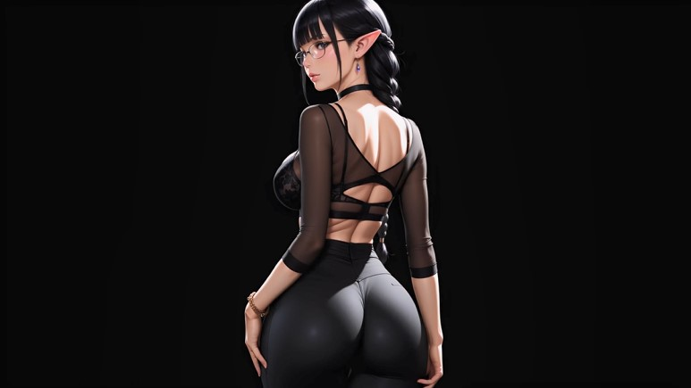Девушка-тёмный эльф скрыта в тени, её образ смесь загадки и силы. Косы, заостренные уши, чокер всё словно оживает на этом тёмном фоне. Её полупрозрачная блузка с открытой спиной и чёрные леггинсы создают неповторимую игру светотени. Такая картинка отлично подойдёт для тех, кто ценит необычный стиль и атмосферу. Анимированная заставка с этим образом может стать настоящим украшением на рабочем столе. Живые обои на пк добавят глубины и динамики, превращая обычный экран в свежий, живой фон. Меняющиеся обои с таким персонажем будут держать внимание и вдохновлять каждый день.