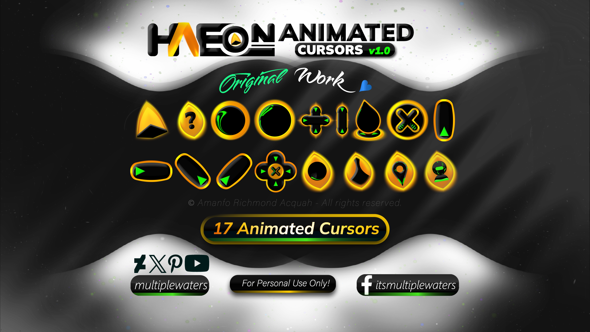 Яркие оранжевые оттенки с зелеными анимациями делают Haeon по-настоящему игривым. Смотрится так, будто на рабочем столе появилась игрушечная машинка. Движущиеся стрелочки создают атмосферу компьютерной игры, вызывая улыбку у любого, кто на это взглянет. Нестандартная цветовая палитра выделяет набор курсоров среди прочих, превращая простые клики в настоящее развлечение. Каждый элемент словно оживает, добавляя нотки радости в процесс работы. Такие детали делают время, проведенное за компьютером, более увлекательным и живым.