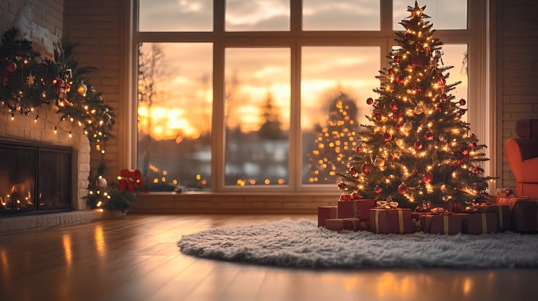 Елка в центре комнаты светится новогодними гирляндами, а под ней подарки, готовые подарить радость. Возле камина мерцают огни, и кажется, что тепло от него проникает в каждый уголок. Через большие окна виден мягкий свет заката, который добавляет уют и подсказывает скоро главный зимний праздник. Живой фон с украшенной комнатой создает нужное настроение, это не просто картинка, а настоящее движение, мерцают огоньки, слегка колышется огонь в камине. Такие живые обои на ноутбук дарят ощущение рождественского праздника и уюта, словно ты уже в гостях у зимней сказки. Это не просто заставка, а маленькая история, которая делает ожидание Рождества еще теплее и приятнее.