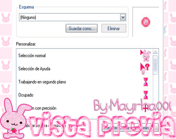 • С помощью кнопки Обзор, выберите нужный указатель из папки в которую вы распаковали курсоры Conejito Cursor Pack для каждой позиции и не забудьте нажать кнопку Применить.