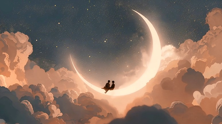 Вот где волшебство начинает свой танец, два силуэта на огромном, ярком полумесяце, будто они парят в мечте, окружённые мягкими облаками и мерцающими звёздами. Вся сцена словно пропитана теплом и романтикой, где свет луны сияет особенным светом на фоне темного ночного неба. Такие живые обои на рабочий стол, словно настоящий билет в мир сказки. Это не просто заставка, а живой фон, который создаёт настроение и помогает уйти от будничной суеты. Анимированная картина дарит ощущение легкости, будто качели медленно раскачиваются в ночи. Видео обои на пк или ноутбук с этой сценой добавят волшебства в привычный день и сделают экран местом для тихих мечтаний.