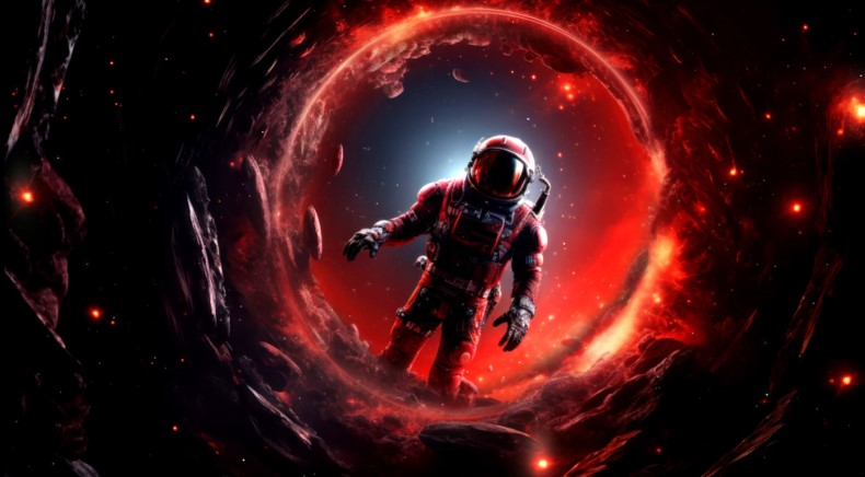 Иногда хочется оторваться от земли в буквальном смысле и этот кадр, будто стоп-кадр на границе неизведанного. Астронавт парит внутри светящегося кольца, вокруг него клубится красная туманность, слои света перетекают друг в друга. Есть в этом что-то завораживающее, одиночество и масштаб, секунда до прыжка в неизвестность.