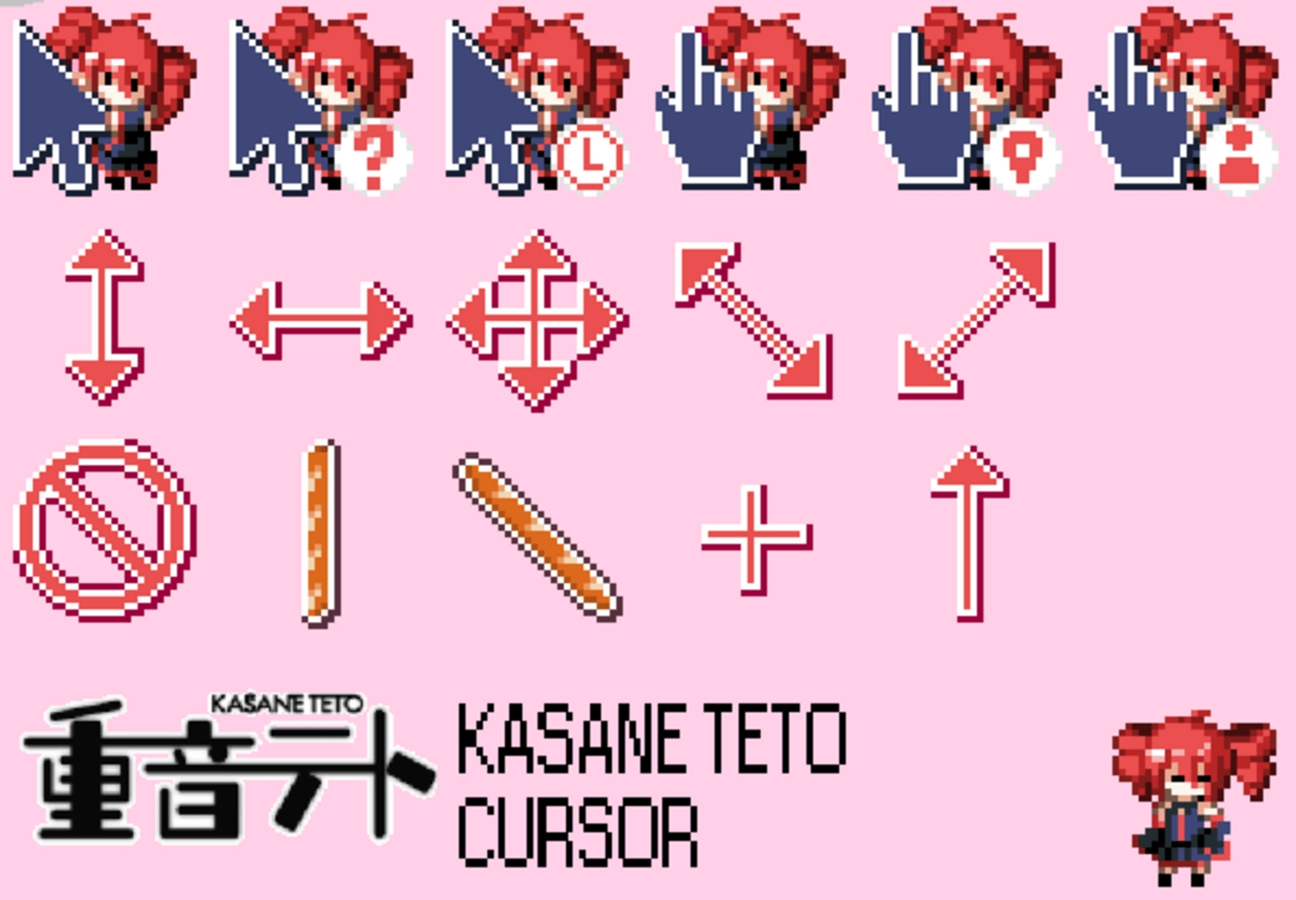 Это курсор с характером. Синий базовый тон и яркая причёска всё по образу Тето. При загрузке короткая, забавная анимация, при зависании мини-шок, когда наводишь на поле ввода — мило танцует. Поставь на рабочий стол, и вместо скучной стрелочки мышки у тебя появится живой помощник. Лёгкий по ресурсам и заметный по настроению.
