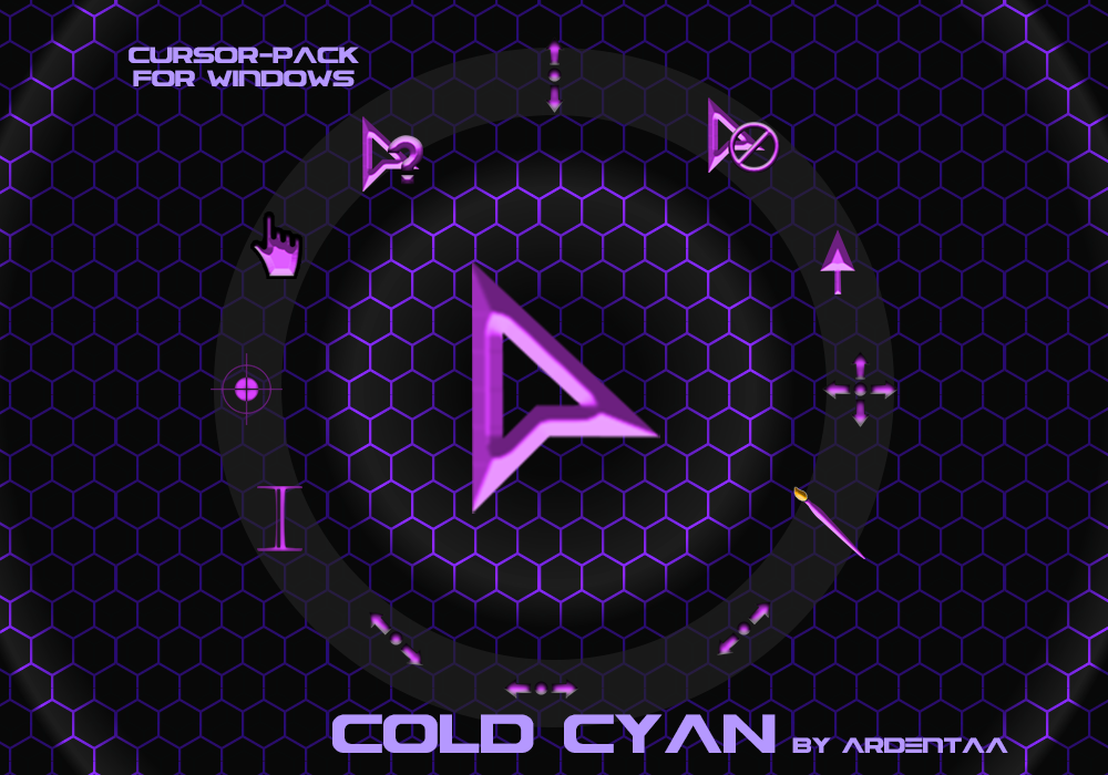 Хотите что-то свежее для вашего компьютера, рекомендуем набор курсоров «Cold-Purple» от ArdentAA. Это как раз то, что нужно, чтобы обновить на рабочий стол. Здесь все курсоры выполнены в такой фиолетово-голубой гамме. Цвет очень интересный, он вроде холодный, но при этом стильный, прекрасно подойдёт тем, кто любит ненавязчивый, но заметный дизайн. Такой набор указателей легко заменит стандартные курсоры и это сразу меняет ощущение от работы, не кричит о себе, а просто создаёт приятный фон.