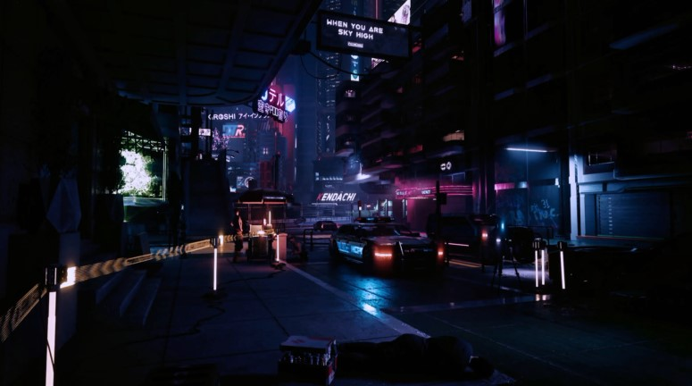 Ночь, Найт-Сити не спит никогда. Розовый и синий неон разрывает темноту, а где-то вверху мигает та самая вывеска, а на мокром асфальте отражается свет, в центре кадра замер футуристичный полицейский автомобиль, оградительная лента колышется, атмосфера густая, как смола. Такие движущиеся обои передают дух киберпанка: высокие технологии, низкая жизнь. Хочется вглядываться в детали, искать скрытые смыслы. Установите живые обои на пк и рабочий стол превратится в кадр из будущего, без лишнего пафоса, просто кусочек другого мира на вашем экране.