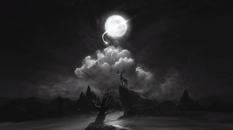 Темное небо здесь дышит, а звезда падает не раз в час, а когда вздумается. Олень на скале замер в черно-белой графике и ничего лишнего. Смотришь в монитор и чувствуешь глубину, луна висит близко, а горизонт уходит в никуда. Подвижные слои создают объем, как будто ты заглянул в чужой сон.